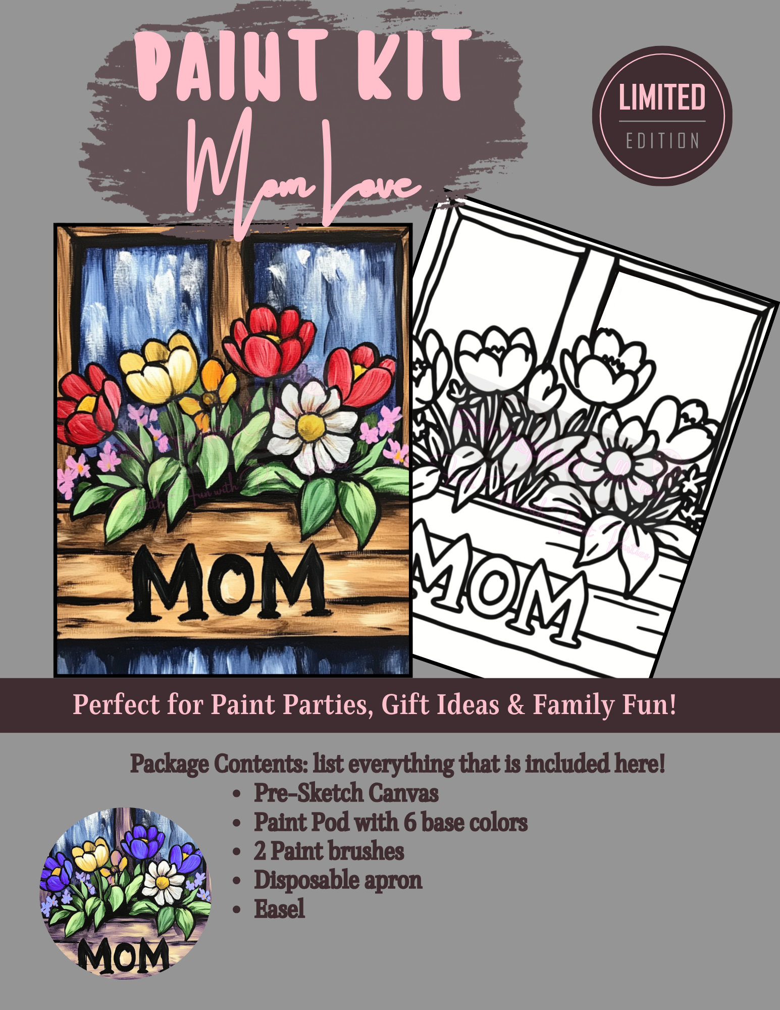 Get ready to paint with purpose, fun and joy! Our Mom Love Wrap all-in-one paint kit includes a pre-sketched canvas, vibrant acrylic paints, brushes, apron and easel, You also get a sample, instructions and paint mixing guide—everything you need for a fun, relaxing creative experience.